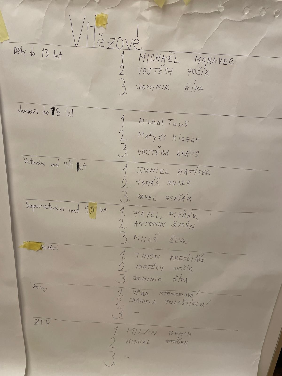 Fotografie nejlepších 3, kategorie, skupina B, skupina C, nováčkové, junioři, U13, ženy, ZTP, pořadatelé, ČP v Brně 10.1.2026